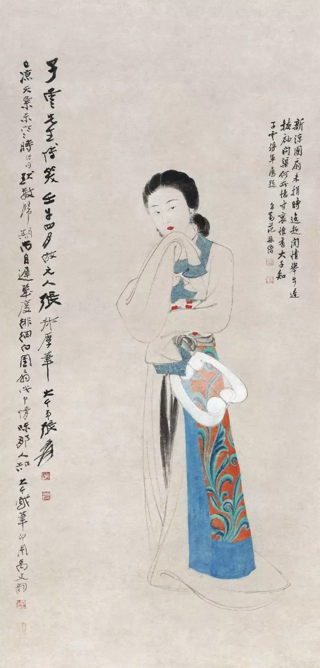 张大千 1942年作 唐装纨扇仕女 立轴