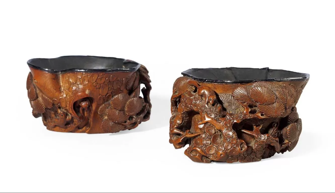 竹杯兼具审美与实用功能,一对保存至今更为难得,颇具收藏价值。