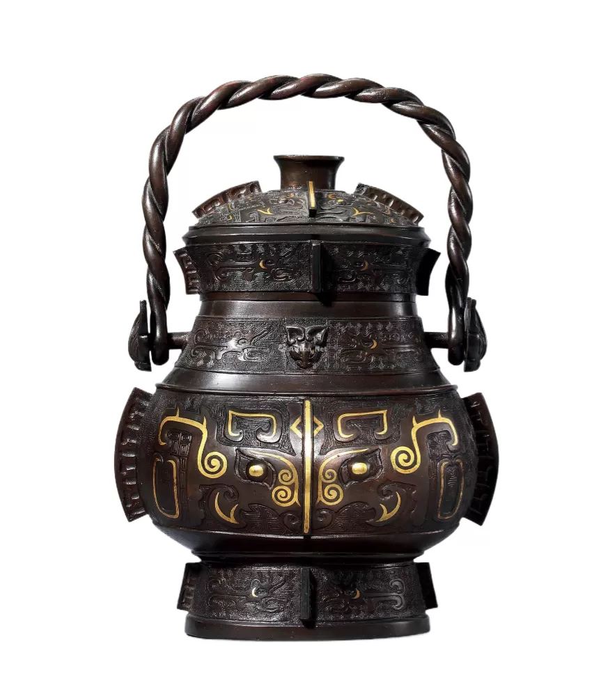 铜错金兽面纹提梁卣