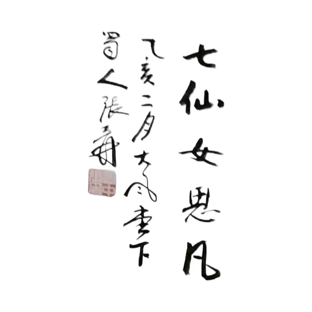从文化内涵角度看,作品承载着中国传统文化的核心精神。道教神话是中国传统文化的重要组成部分,《七仙女思凡》以绘画形式再现了神话故事,传递了 “追求自由、向往美好” 的文化内核。同时,作品中的 “诗、书、画、印” 融合,体现了传统文人画的综合艺术特质,是中国传统文化 “儒、释、道” 融合思想的视觉呈现,具有重要的文化研究价值。