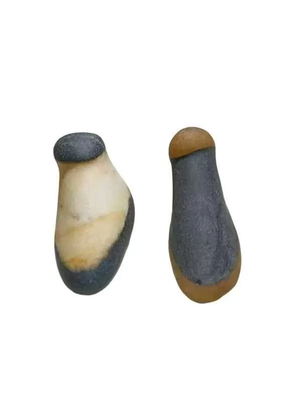 另一方则以浅米白与青灰为基调,造型更偏向小巧的棉鞋:顶部青灰色石块厚实圆润,如同保暖的鞋口,中部浅米白色石面温润柔和,恰似鞋面的柔软质感,底部青灰色石质沉稳厚重,与鞋面形成鲜明对比,整体形态饱满可爱,带着几分质朴的生活气息。