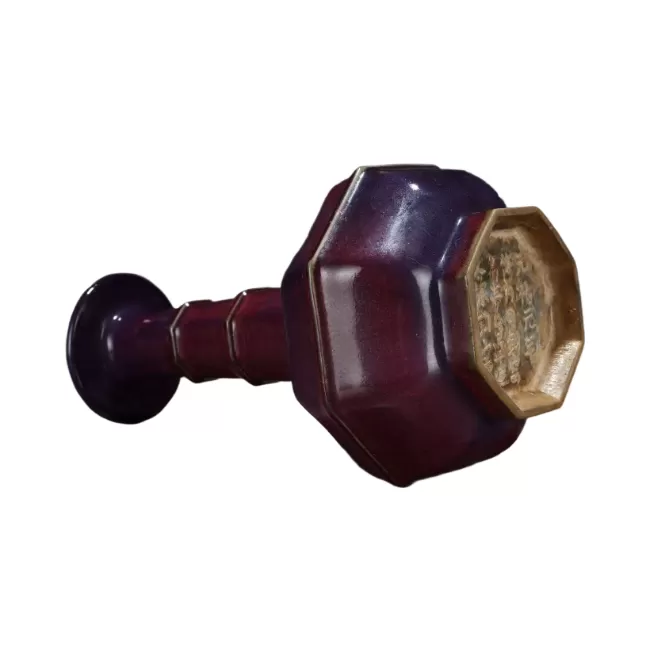 钧窑瓷器素来以 “窑变” 著称,其釉色变化莫测,无一雷同,每一件都是独一无二的艺术品。这件八棱瓶不仅体现了钧窑工艺的技术成就,更承载着宋代士大夫的审美情趣和文化理想。它既可作为文房雅玩,陈设于书斋几案,也可作为艺术珍品,供人欣赏研究。历经千年岁月洗礼,此瓶依然保存完好,釉色如新,实属宋代钧窑传世品中的难得佳品。