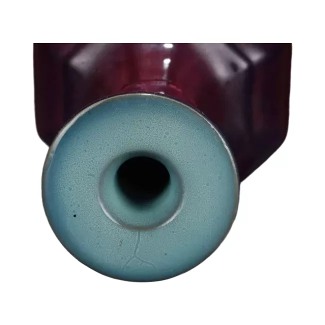 在宋代陶瓷艺术史上,钧窑以其独特的窑变釉色和深厚的美学内涵占据着不可替代的地位。眼前这件高 26.5 厘米、肚径 15.8 厘米的八棱瓶,正是钧窑工艺与宋代文人审美追求的杰出代表。其造型端庄中见灵巧,八棱线条自口至底一气呵成,既显刚劲挺拔,又富有韵律变化,体现了宋代瓷器在形制设计上的高度成熟。