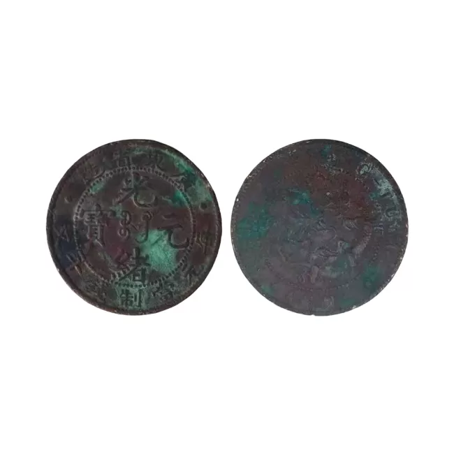这枚铜元的诞生,有着划时代的意义:它以机器标准化生产遏制了私铸,缓解了钱荒,稳定了晚清货币市场;它首次将西方工业技术引入中国造币业,为后续全国各省铜元铸造奠定了工艺基础;它的设计融合中西元素,既是皇权的象征,也顺应了国际贸易的需求,成为近代中西文化碰撞的实物见证。我手中的这枚铜元,正是这一历史节点的产物,历经百年流通与埋藏,铜锈斑驳却形制完整,每一道纹路、每一处锈迹,都在无声诉说着晚清中国的风云变幻。