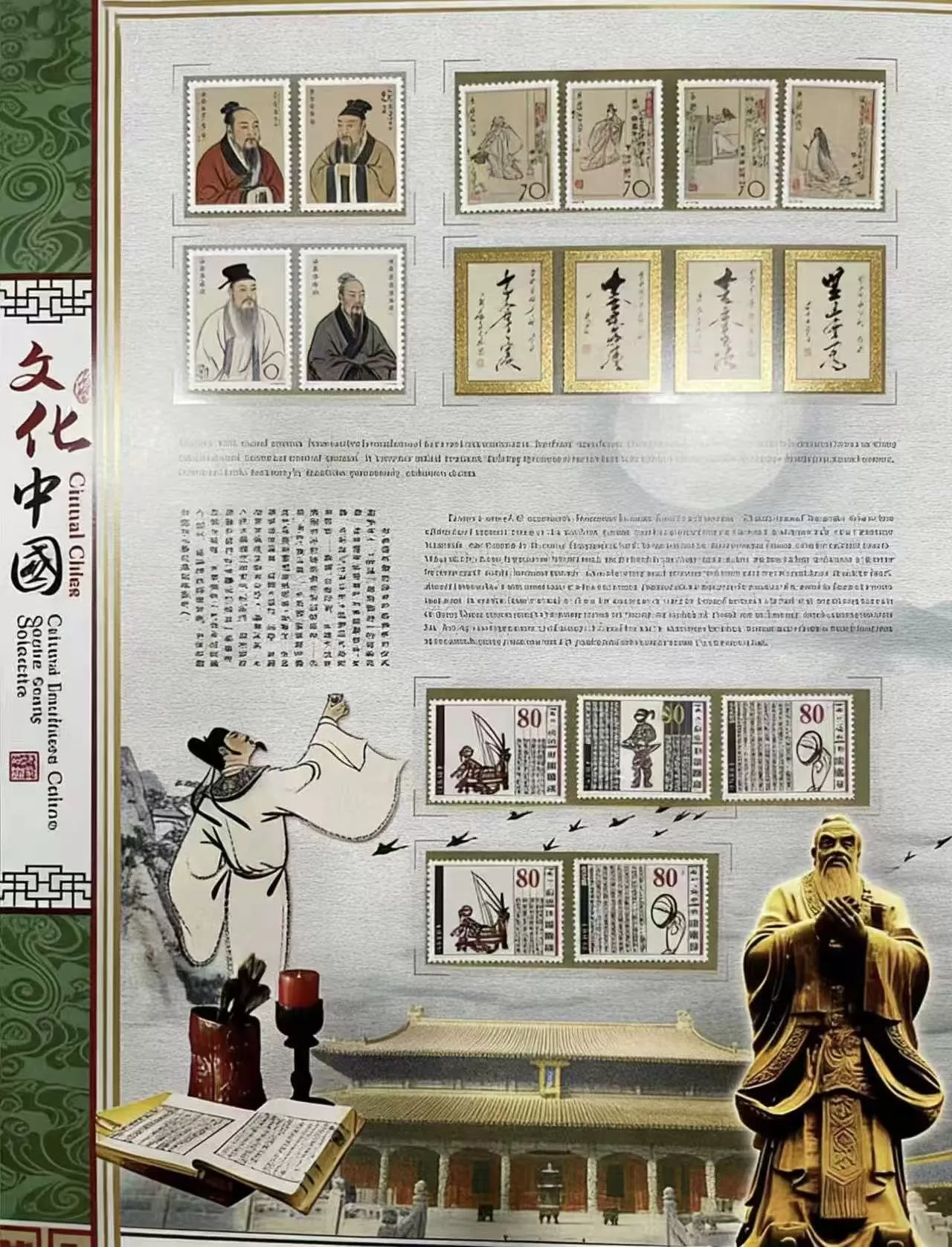 市面上的传统文化主题邮品,多为单一主题、零散套票,而这套《文化中国》珍藏册,首次以 “专题珍藏” 的形式,将 12 大传统文化领域的核心邮票系统整合,完整覆盖从先秦到明清的文化脉络,实现了 “一套邮册,览尽中华文脉” 的收藏价值。这种系统性的整合,不仅需要对中国传统文化的深度理解,更需要耗费数年时间收集全套全新品相的邮票,其整合难度极高,市面上几乎无同类完整藏品,堪称 “不可多得的文化邮品孤本”。