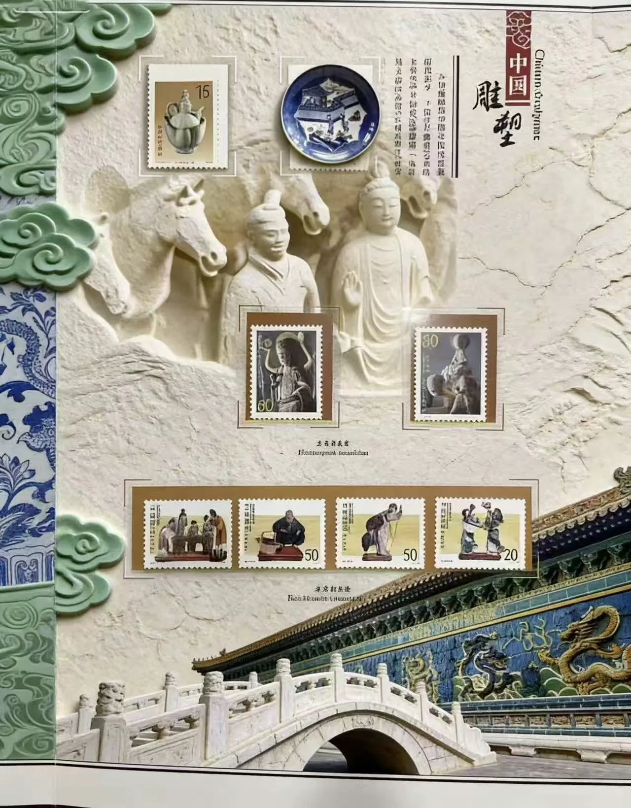 艺术板块是这套邮册的华彩篇章,涵盖戏曲、绘画、书法、雕塑四大核心门类: