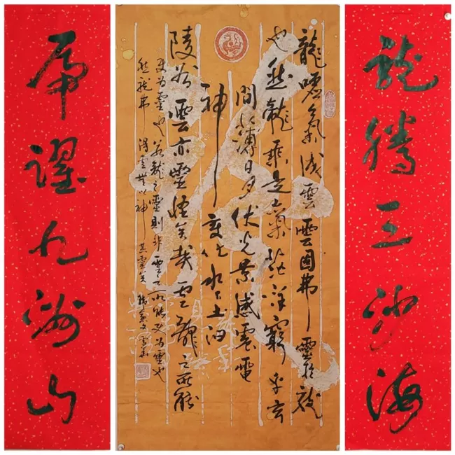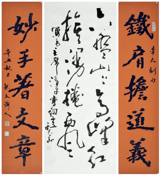 先生幼承家学,浸淫翰墨七十载,遍临秦汉篆隶、魏晋行草、唐宋诸家,深耕不辍间练就真、草、隶、篆、行五体皆精的深厚功力。他打破书体壁垒,将碑的雄浑与帖的灵动完美融合,形成“碑骨帖韵、雄浑洒脱”的独特书风,笔墨间既有古法的厚重,又有时代的灵动,辨识度极高,作品多次入选全国书法大展,被荣宝斋等权威机构及海内外藏家争相收藏。