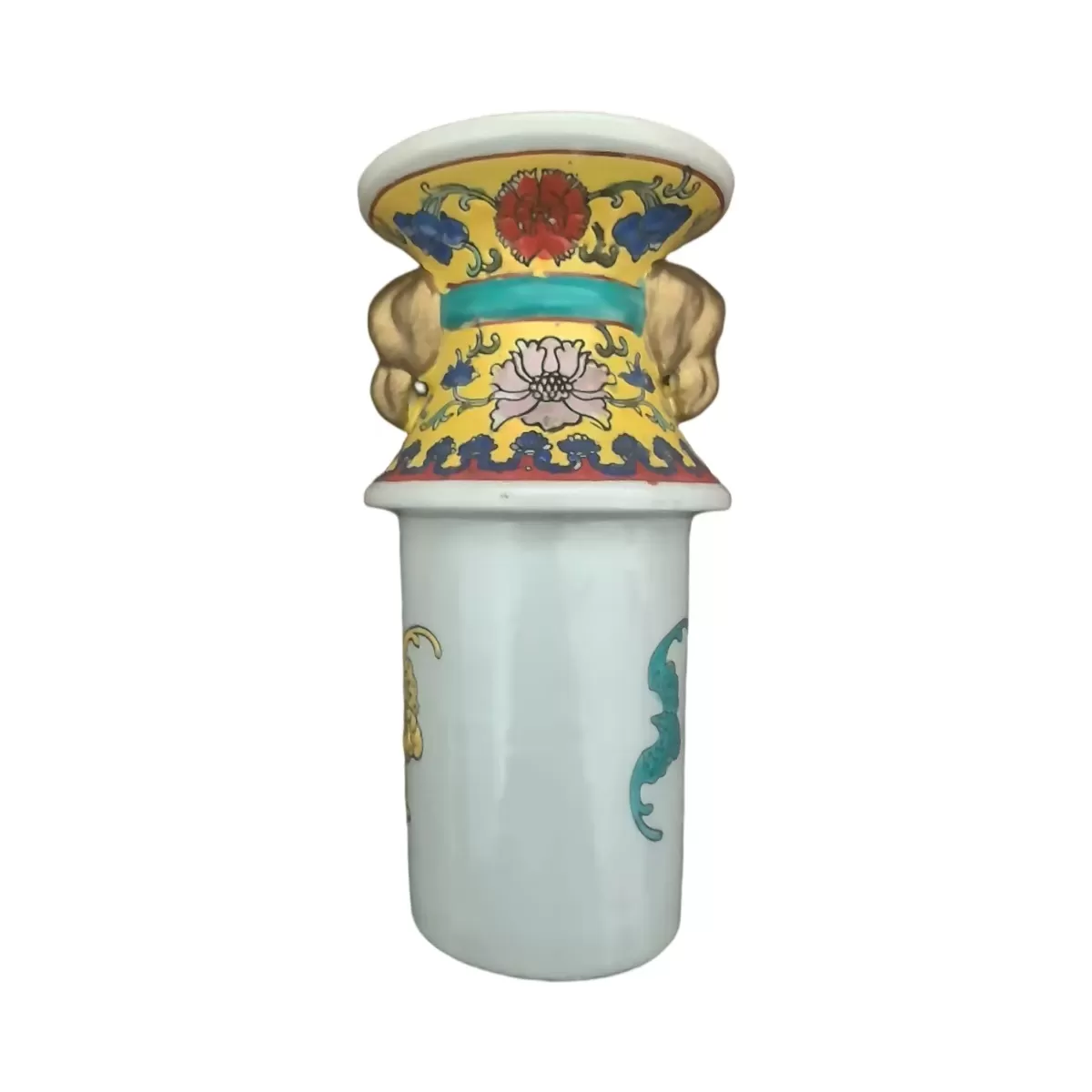 · 辅助纹饰:颈部、肩部、近足处分层装饰如意云头纹、莲瓣纹、蕉叶纹等,以松石绿、矾红、描金勾边,纹饰布局严谨,主次分明,既符合清代官窑 “繁而不乱” 的装饰风格,又强化了器物的等级感。