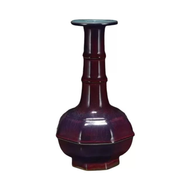 钧窑玫瑰紫釉八棱瓶